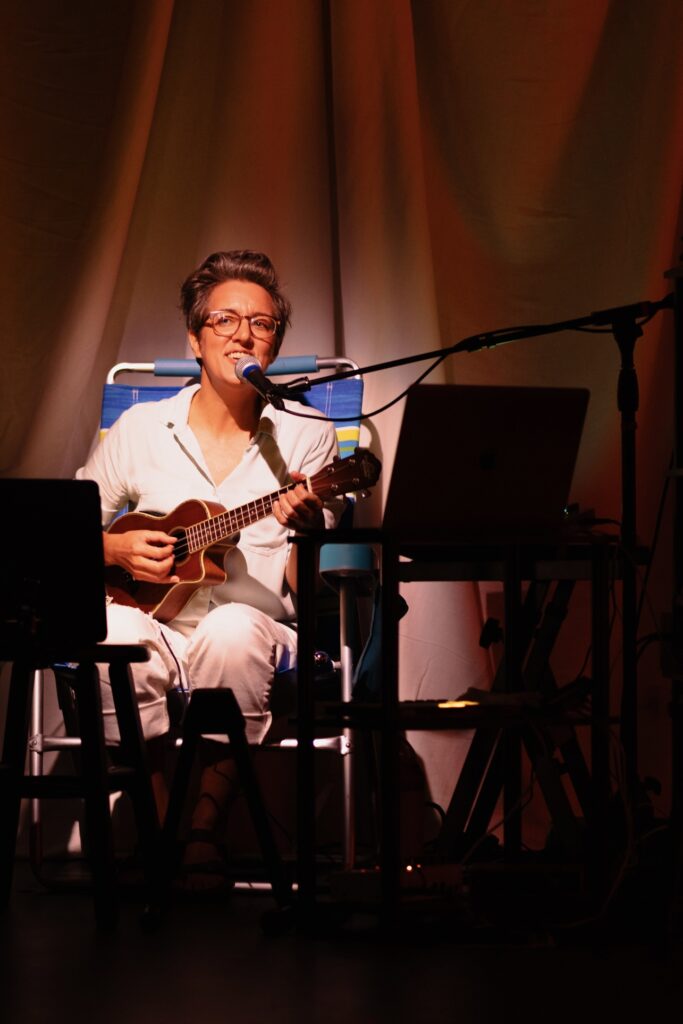 Liz has been singing and playing music her entire life, starting with the piano at age four and violin at seven. She played violin for years in the Louisville Youth Orchestra, including a stint as concertmisstress. In piano she won various state competitions. She began guitar in high school, picked up the ukulele in Fiji in 2006, and hasn’t put it down since. Liz learned the accordion in 2007 to play all over the city of Edinburgh during the festival, and was introduced to the baglama in Greece. She learned to playelectric bass to join a band and performs with various plays, bands, and concerts from the Pyramid Club in NYC to Stratford Circus in London. Playing in hootenanies in New York incited her love for the banjo and afforded her introductions to the mandolin, dobro and upright bass. She began writing electronic music in 2017, primarily in the service of her theatre company, Anonymous Ensemble. She is currently working on an album of lullabies from around the world.